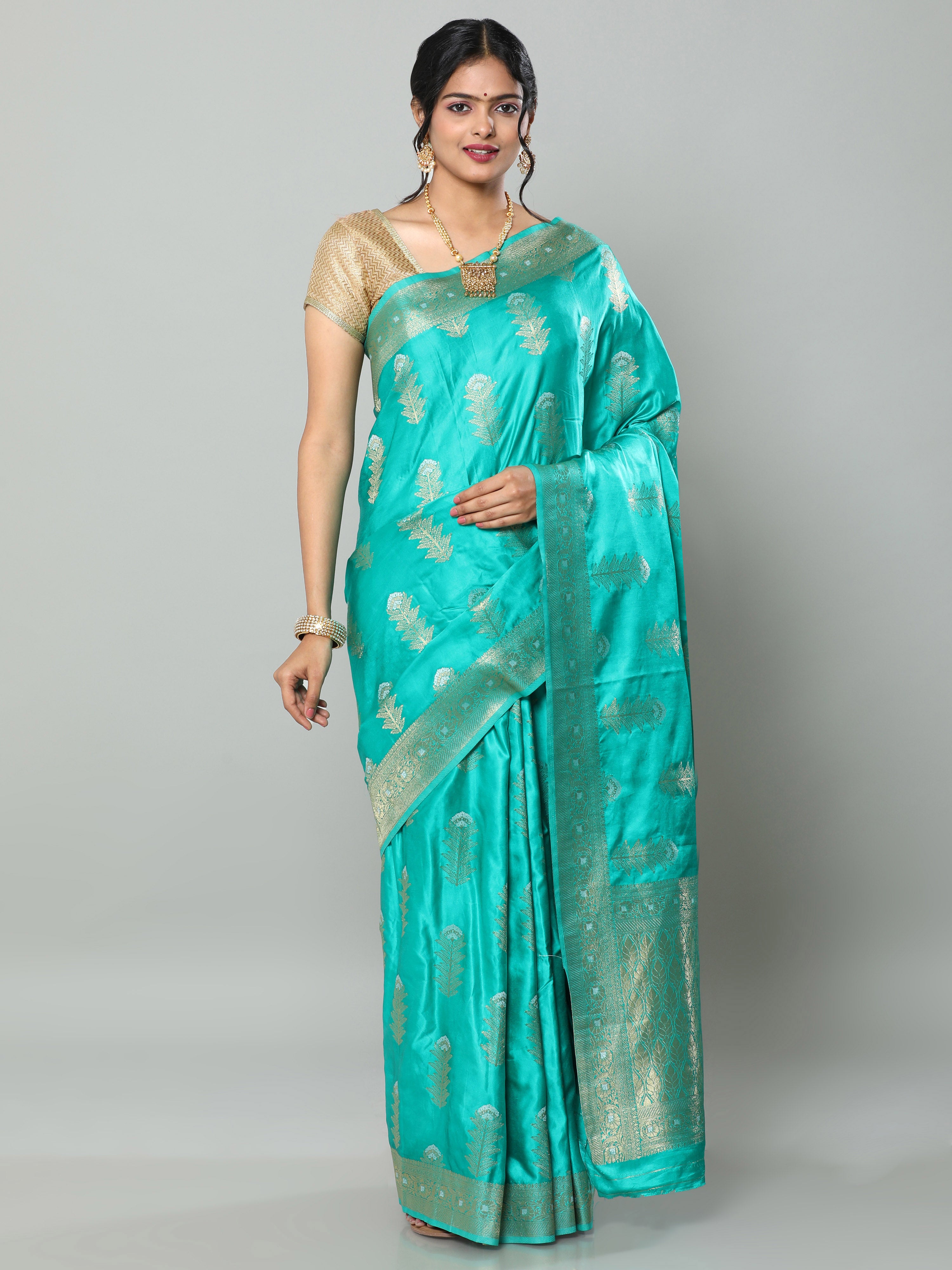 • Women's Banarasi Meenakari Gaji Silk Zari Saree-6.3 Mtr (Turquoise)