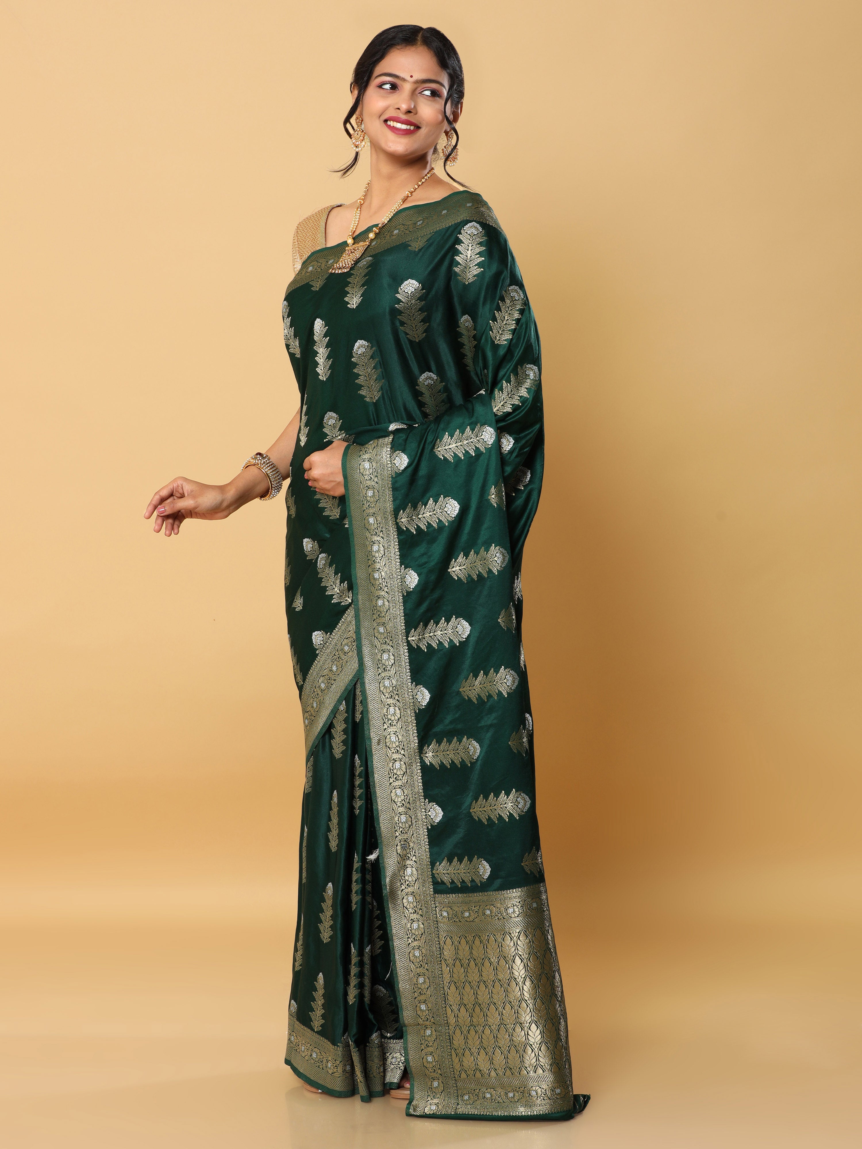 • Women's Banarasi Meenakari Gaji Silk Zari Saree-6.3 Mtr(Rama Green)